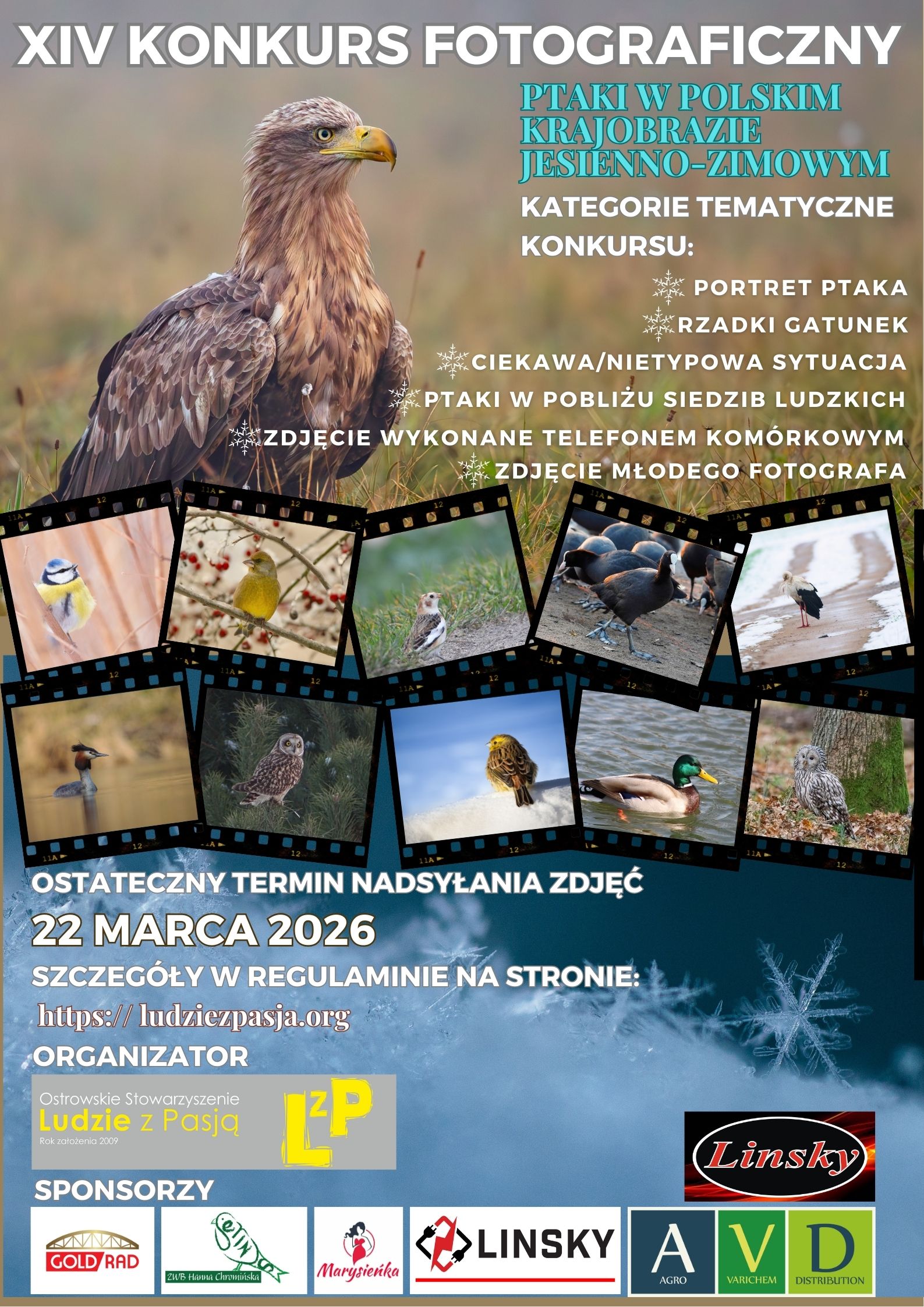 Ostrowskie Stowarzyszenie „Ludzie z Pasją" już po raz czternasty zaprasza do udziału w Konkursie Fotograficznym pt. „Ptaki w polskim krajobrazie jesienno-zimowym". Przez lata wydarzenie to cieszy się niesłabnącym zainteresowaniem zarówno...