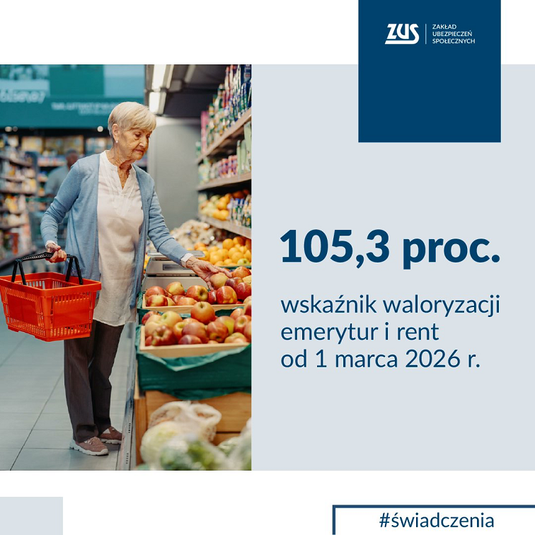 ZUS co roku podwyższa wypłacane świadczenia długoterminowe. W tym roku waloryzacja będzie miała charakter wyłącznie procentowy. Wskaźnik waloryzacji emerytur i rent wyniesie 105,3 procent. Obliczany jest on na podstawie średniorocznego wskaźnika cen towarów i usług konsumpcyjnych dla gospodarstw domowych emerytów i rencistów z poprzedniego roku kalendarzowego, powiększonego o co najmniej 20 proc. realnego wzrostu przeciętnego wynagrodzenia w tym samym okresie – informuje Wojciech Ściwiarski, rzecznik prasowy ZUS w województwie mazowieckim.
