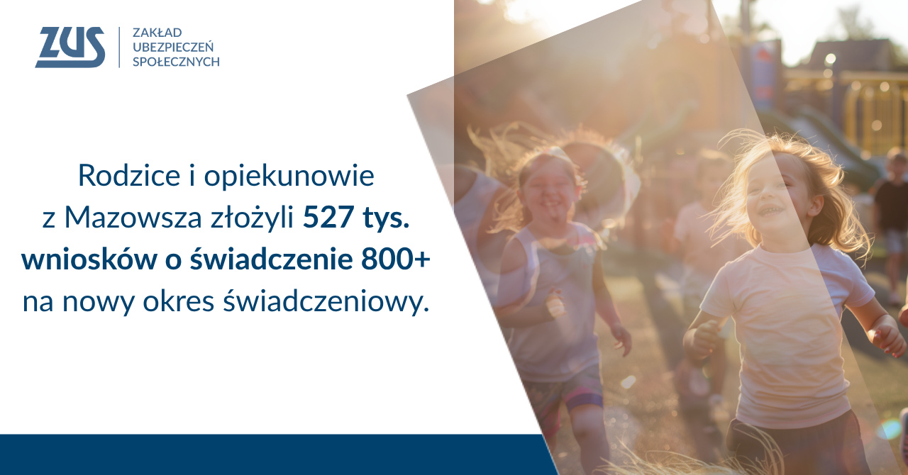 Rodzice i opiekunowie z województwa mazowieckiego złożyli już ponad 527 tys. wniosków o 800 plus na nowy okres świadczeniowy, obejmujących 752 tys. dzieci z naszego regionu,