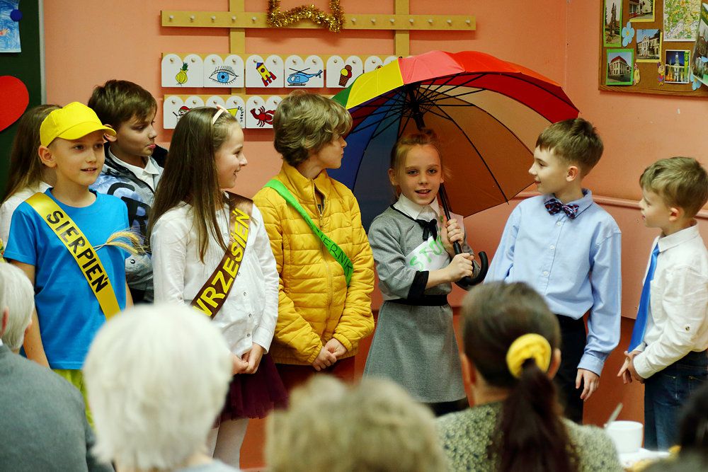 sp1 dzienbabci„Dzień Babci dzień Dziadka to dopiero gratka, wnuki pięknie są ubrane, maja buzie roześmiane…”